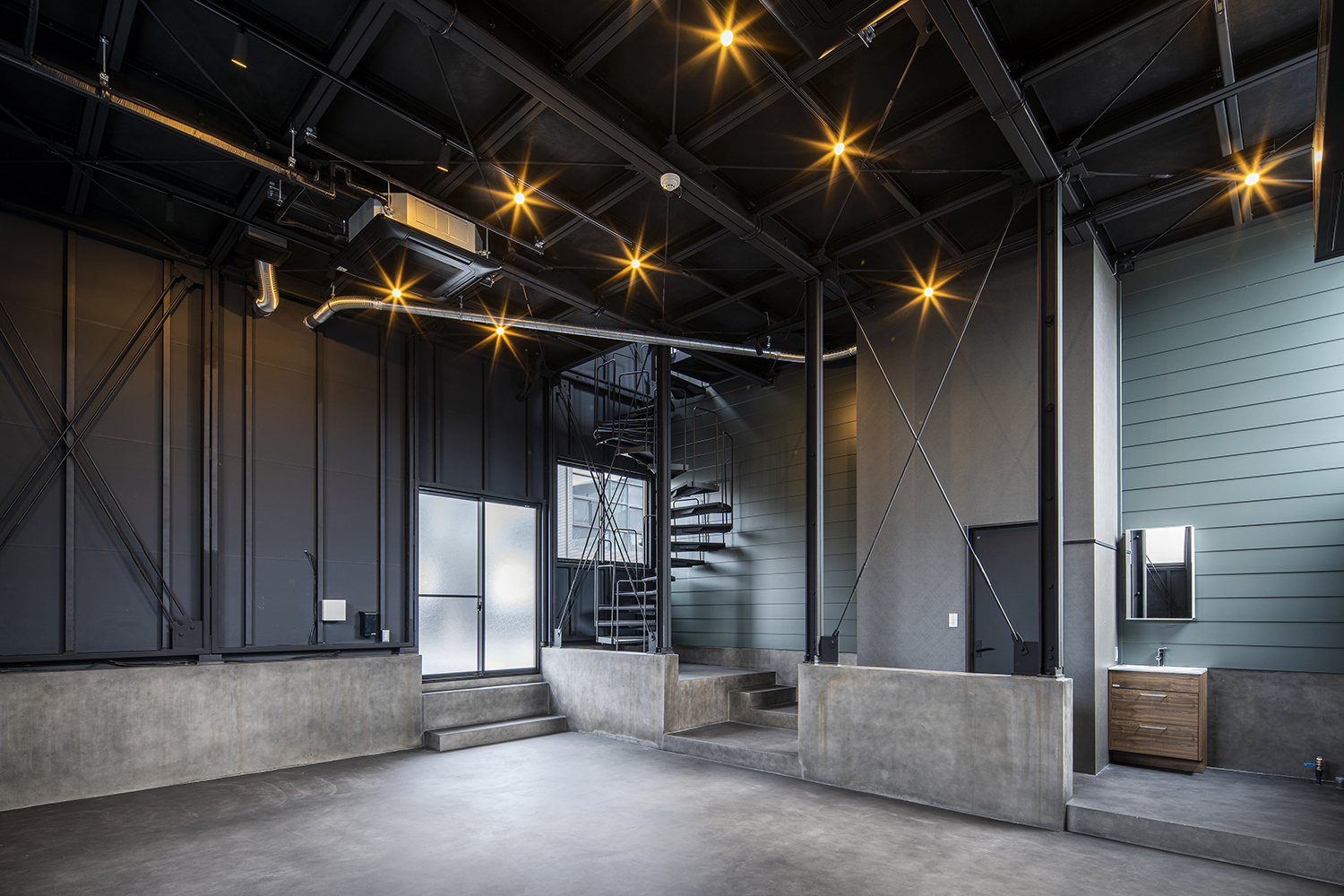 3棟の中で唯一二層タイプのA棟は全二区画。1階の天井高が4.5mある最も高い棟です。更に床面積が1,2階合わせて115.558㎡と、横にも縦にも広がりのある贅沢な造りとなっています。