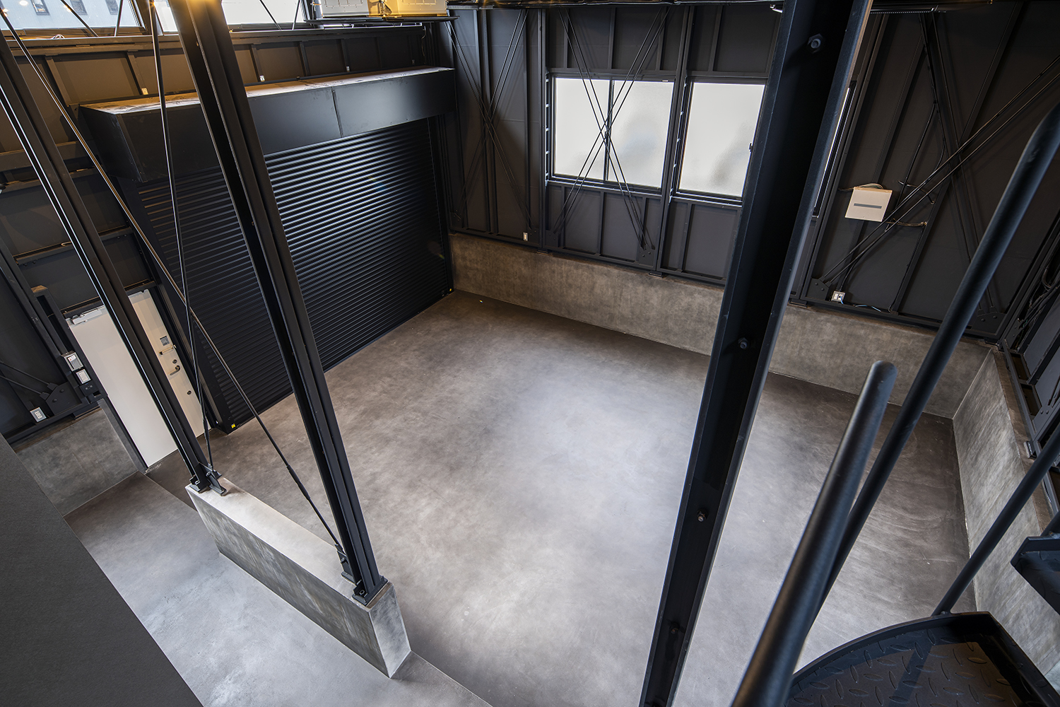 1階ガレージは、クルマを停めても余裕のある広さ。トイレ・洗面もあるので店舗としての活用にも便利です。2階はキッチンが完備されているのでオフィス活用にも最適なタイプです。