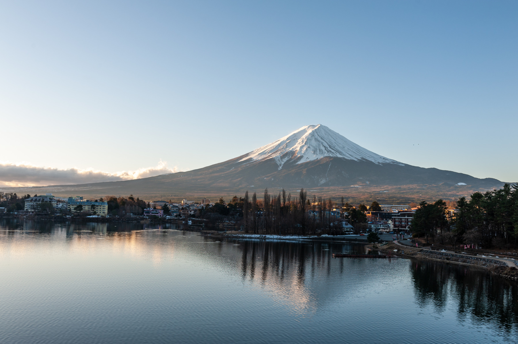富士山の眺望を第一に設計された2階のリビングからは、どこにいても美しい富士を眺めることができます。特に夕日を浴びた富士山の稜線は言葉に表せない美しさです。大開口のガラス面の前にテーブルとチェアを配置すればとっておきの空間の誕生です。
