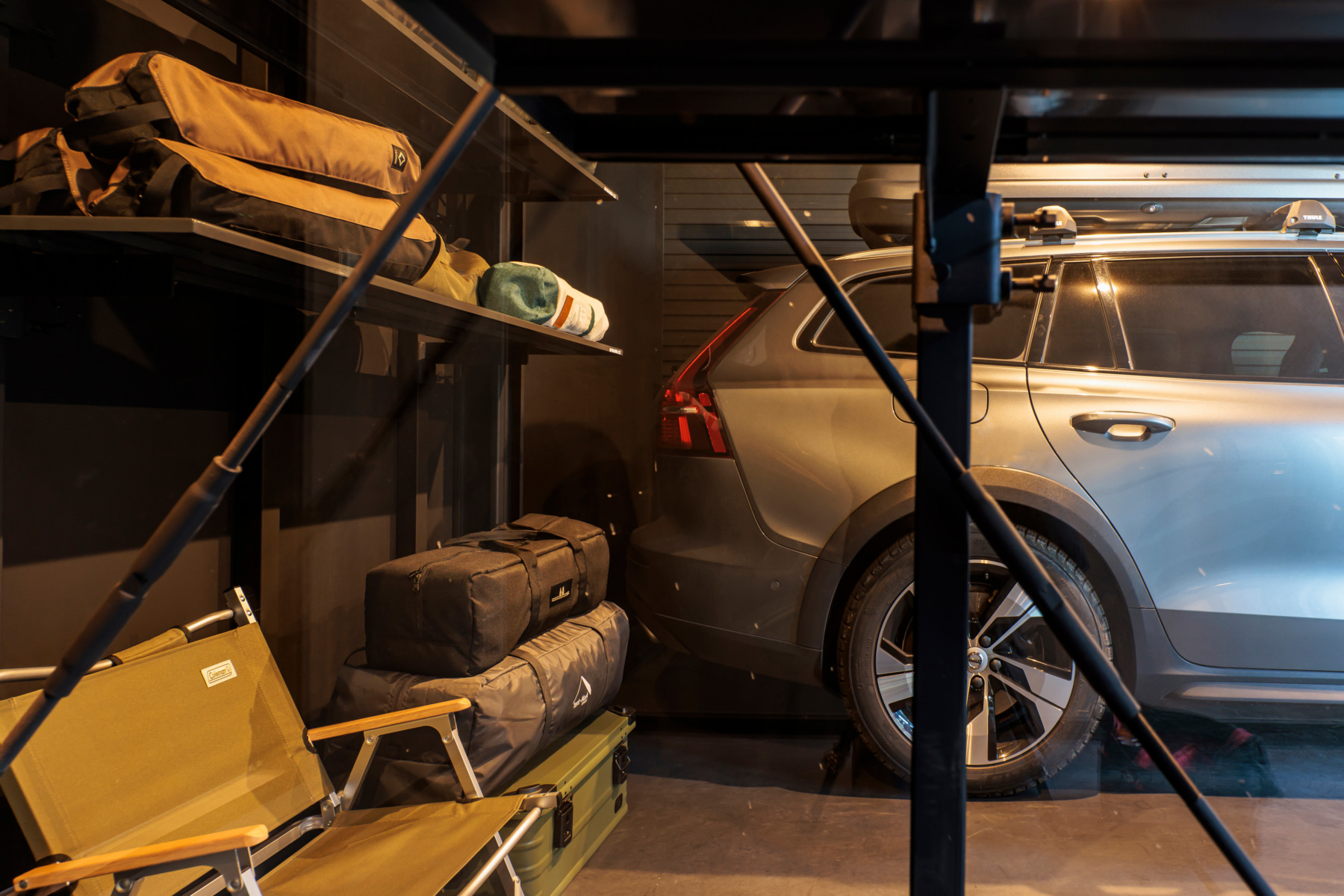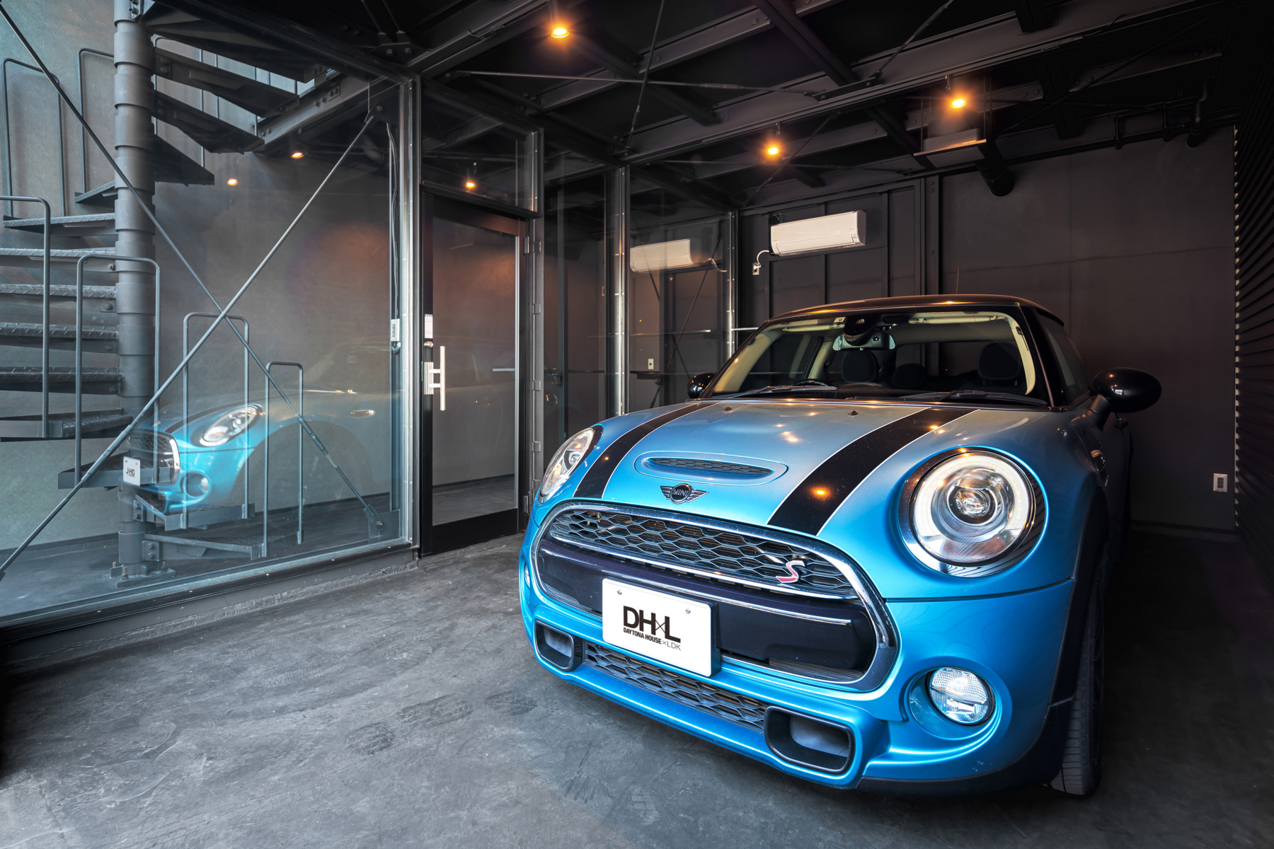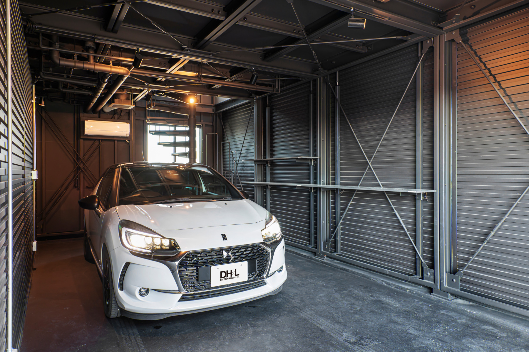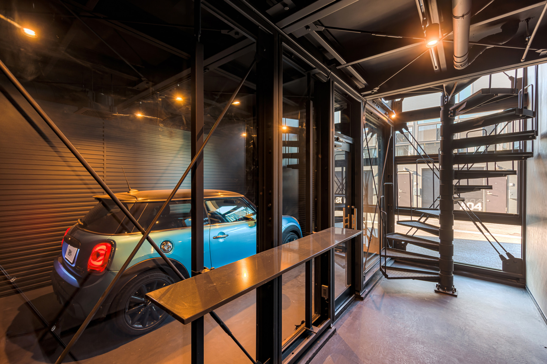 B棟のガレージには愛車を眺めながら過ごせるホビールームを完備しています。