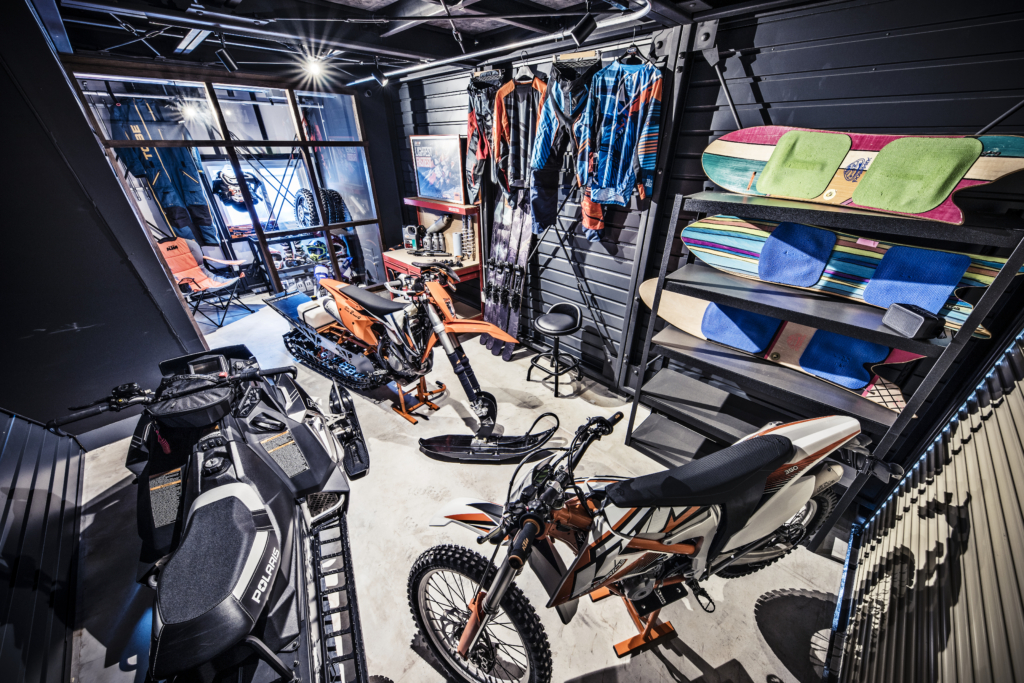 更にガレージ奥にはソファなども置ける間仕切りスペースを設置。愛車のメンテナンスの合間に一服したり、ピカピカになったマシンを眺めながら愉悦に浸ったり。AREA053は、まさにオトコの夢が詰まった究極の趣味の基地なのです。