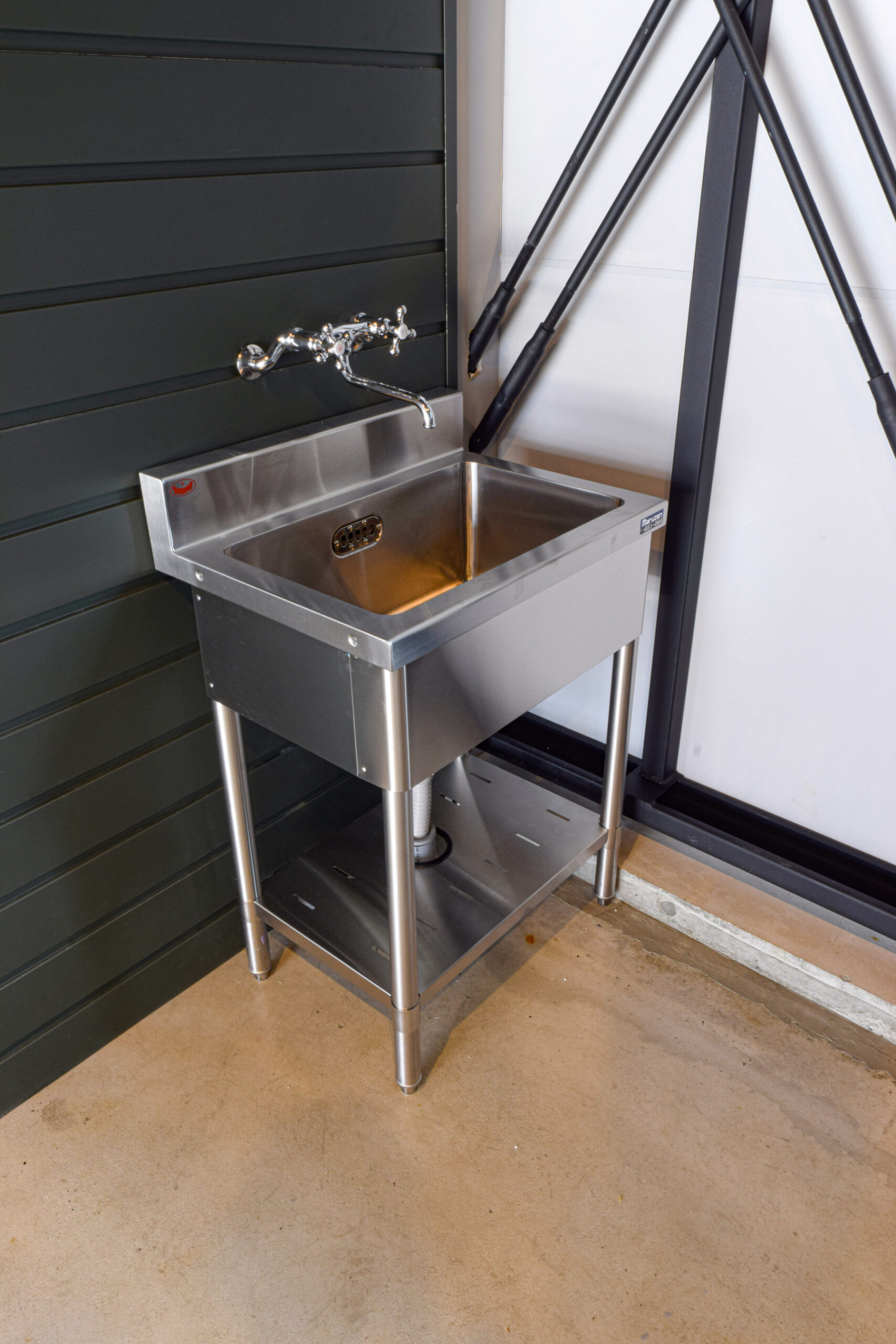 従来のロフト型GLBに比べ、使用可能空間は体感的に倍以上。またガレージ内にはシンク、EV充電用コンセントを完備するなど、内燃機関好き、EV好きをカバーする仕様となっています。