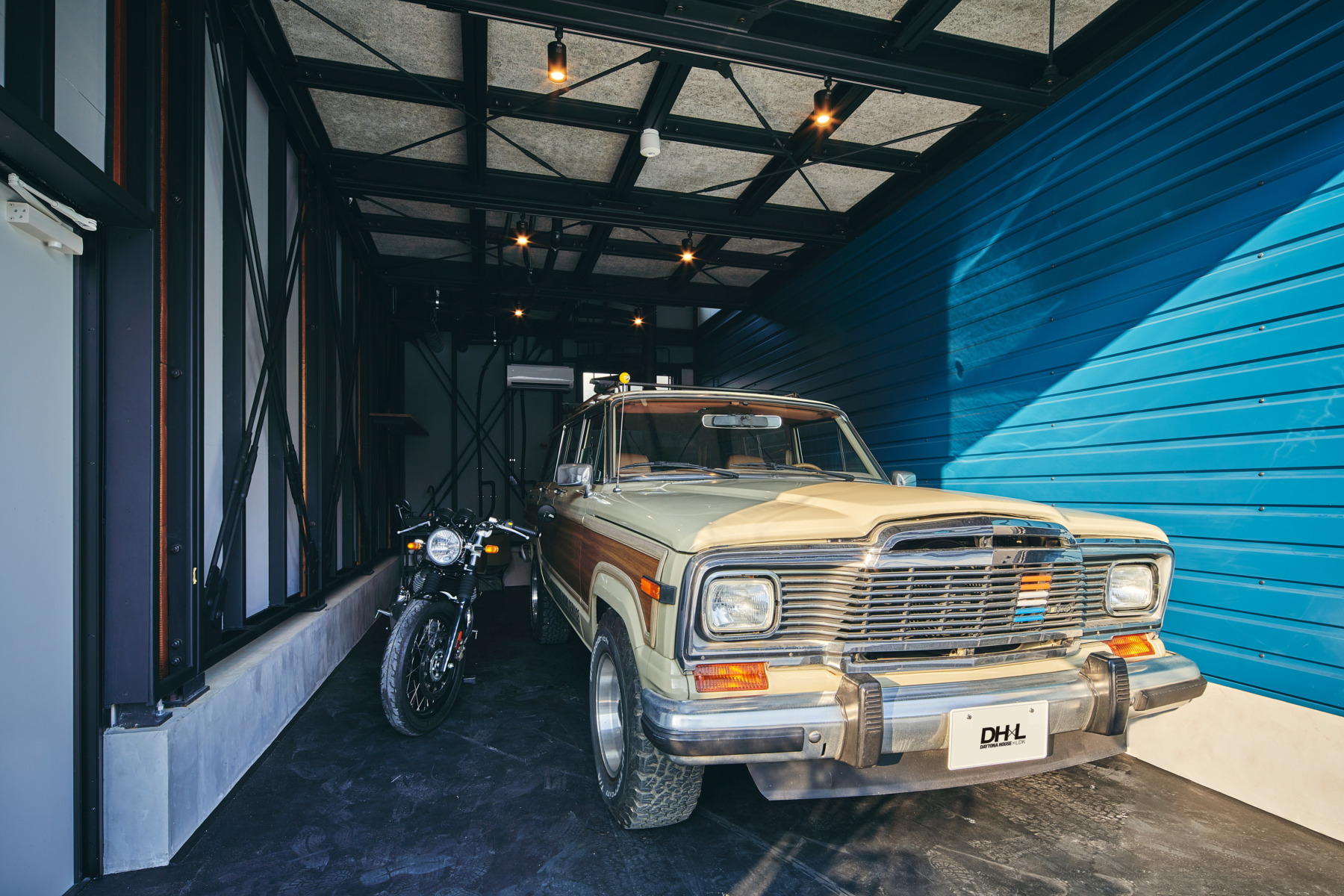 1F空間はクルマ1台+αの広さがあるため、様々なライフスタイルを楽しむことが可能です。小さめのクルマであれば、奥にワークスペースもレイアウトすることも出来てしまいます。もちろん壁面にはFASブラケットも完備。思いっきりギアのレイアウトが楽しめます。