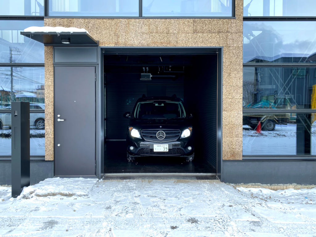 北国仕様ということもあり、断熱材は他のエリアのものよりも厚くした50㎜を採用し、積雪対策として通常3㎜の鉄骨を4㎜にすることで骨組みも更に強化。また大きなガラス面の負荷を軽減するためにPSラジエターを装備し、住宅の基礎を高くするなどして寒冷地とは思えない暖かく住み心地の良いガレージハウスを実現しています。