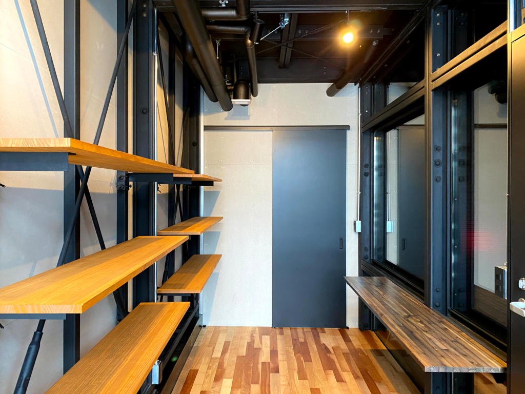 - ガレージ横にはガラス張りの空間があり、愛クルマを眺めたり、趣味空間やワークスペースとしても活用できます。