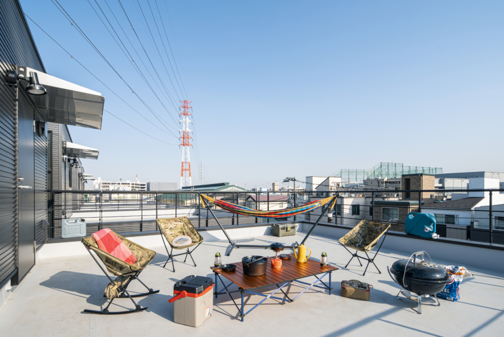 1Fにはガレージに面して趣味の部屋を設置して、“出撃基地”としてのコンセプトを際立たせています。2Fは明るいLDKと洗濯が楽しくなるインナーバルコニーを設定しています。3Fのプライベートルームを経て、なんと屋上利用も可能。日常生活とアウトドアライフのバランスに配慮した使いやすいプランになっています。