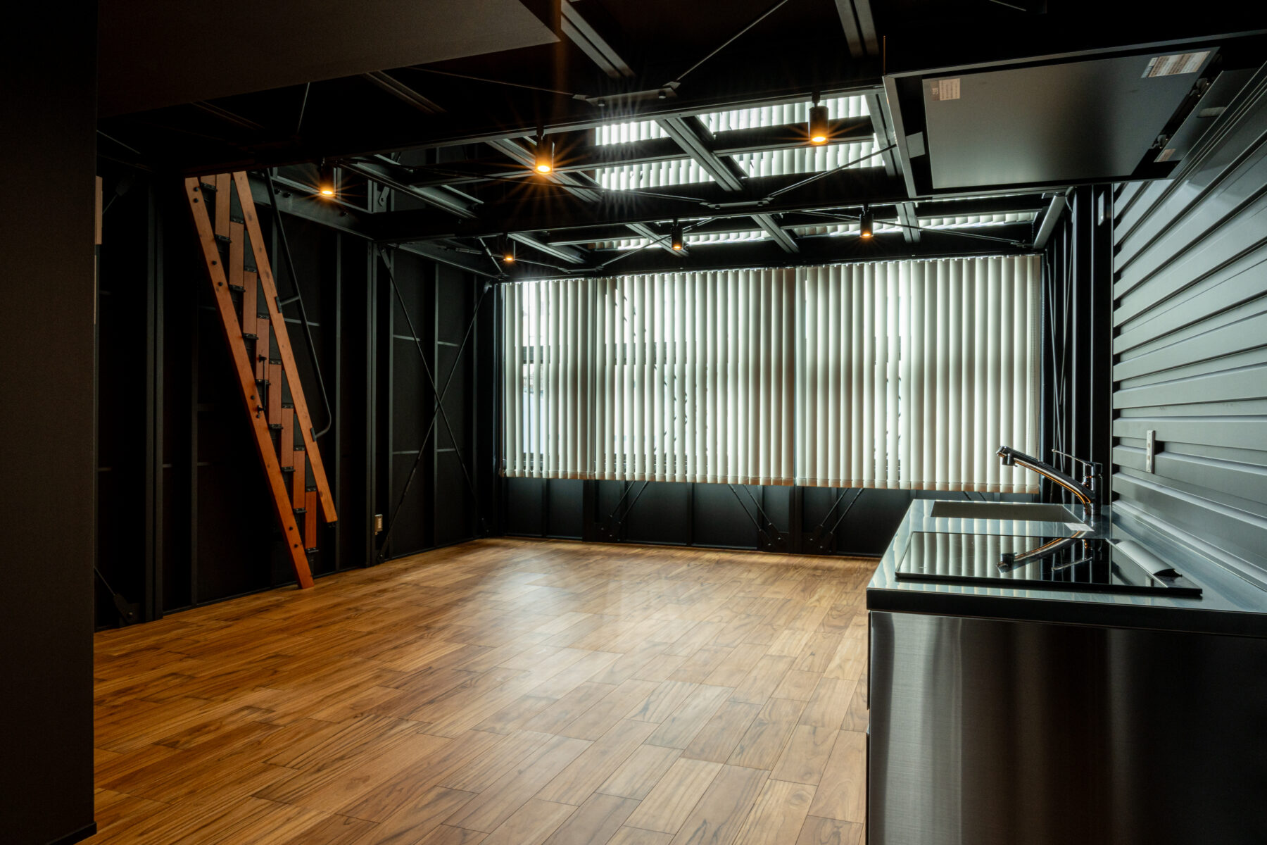 内部仕上げは、鉄骨を剥き出しにしたデイトナハウスらしい無骨な意匠。