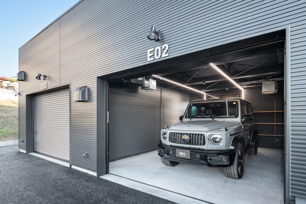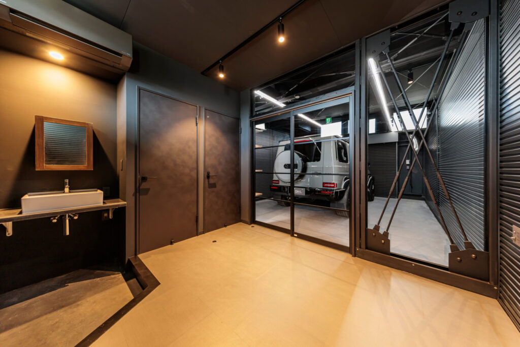 全タイプ、ガレージとホビールームに加え、水まわり、トイレ、シャワールームがセット。愛車を眺めながら過ごすひとときも、趣味を通じて仲間と語らう時間も、そのすべてが日常を離れた上質な体験へと昇華します。平置き駐車場もセットで借りられるため、複数台を所有される方にも最適です。