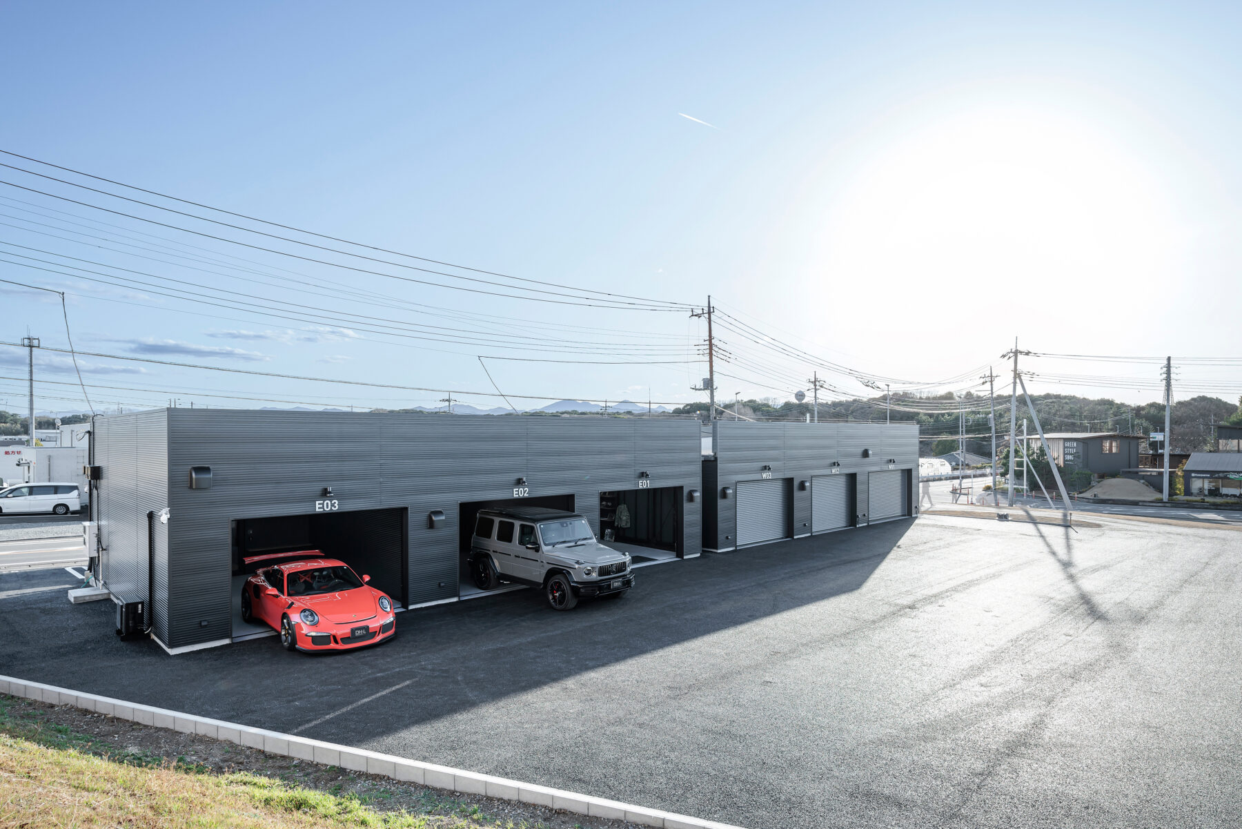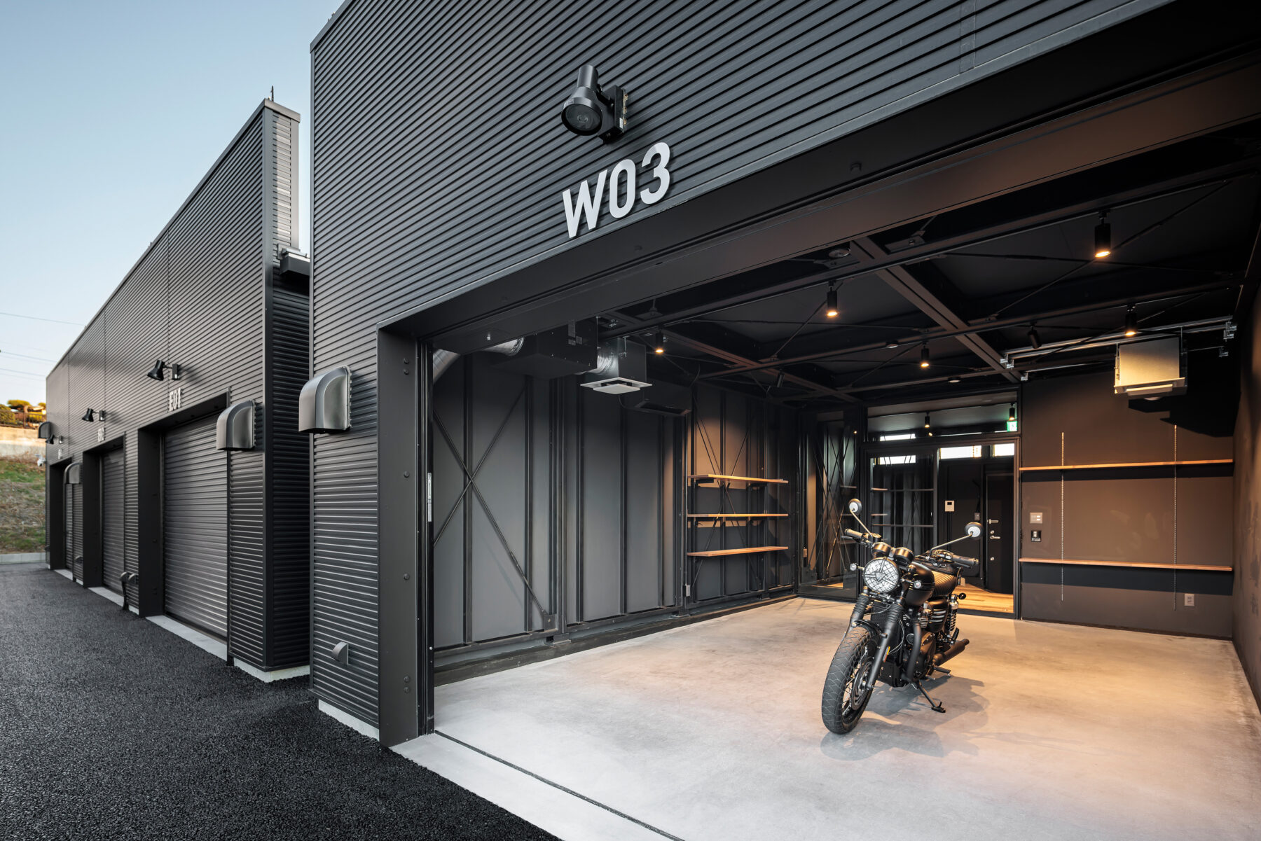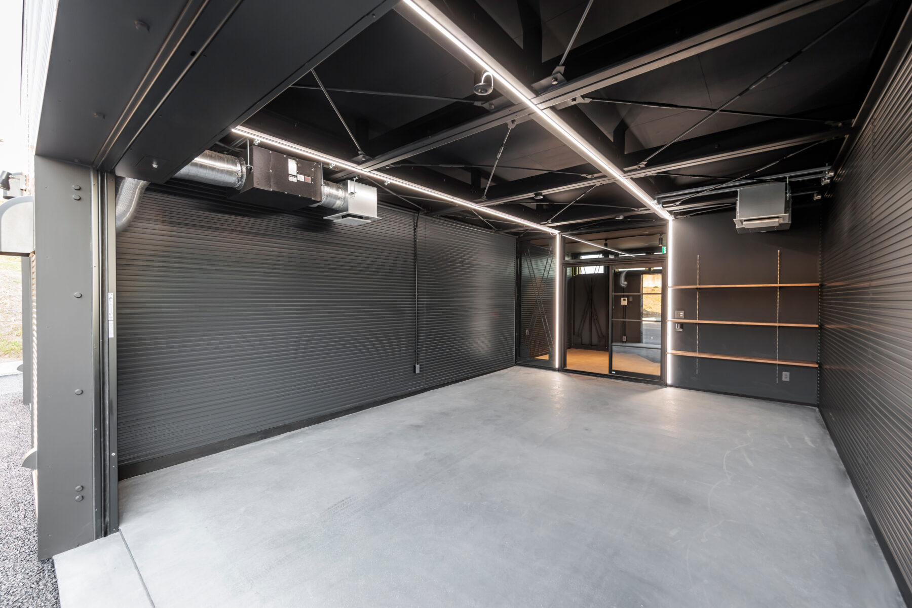 ゆったりと余裕を感じられる配置計画とし、ガレージシャッターは間口3m以上を確保。大型車の出入りやバイクとの併用もストレスなく行えます。会員制ならではの管理体制に加え、防犯カメラも完備しています。