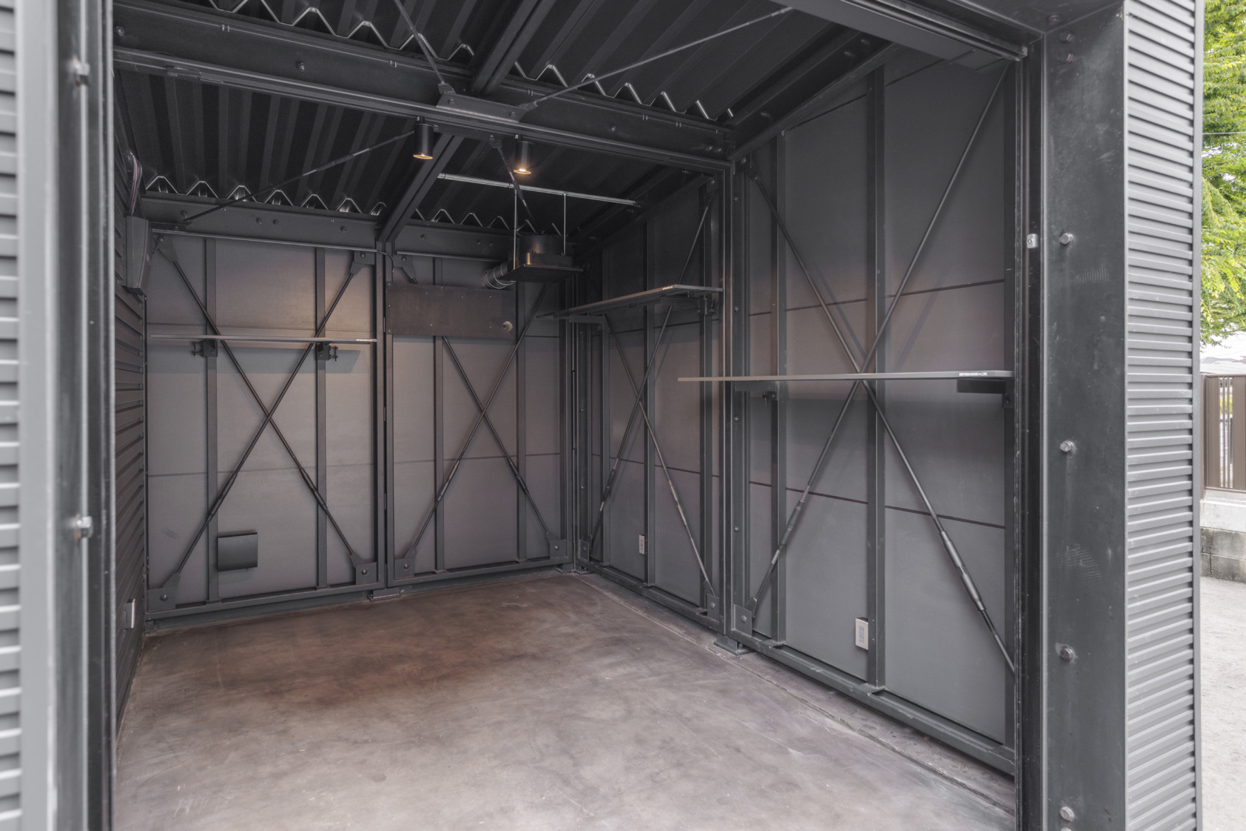 併設されたバイクガレージ単体での賃貸も可能で、趣味に没頭できるプライベート空間としても活用できます。愛車のバイク保管はもちろん、サーフボードやキャンプ道具のディスプレイスペースとして使ったり、時には仲間を招いてちょっとしたパーティーを開いたりと、多彩な使い方にも最適です。