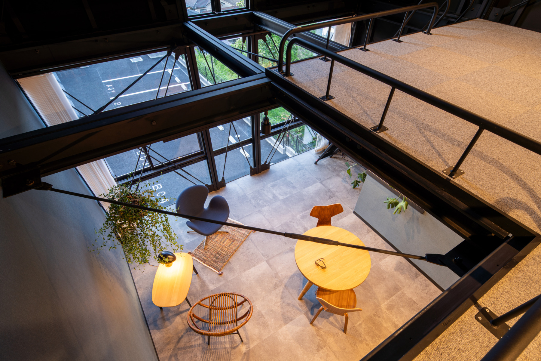 GLBのスタンダードなプランの2×4スパンは、1階から2階へオリジナルの螺旋階段で繋がっています。