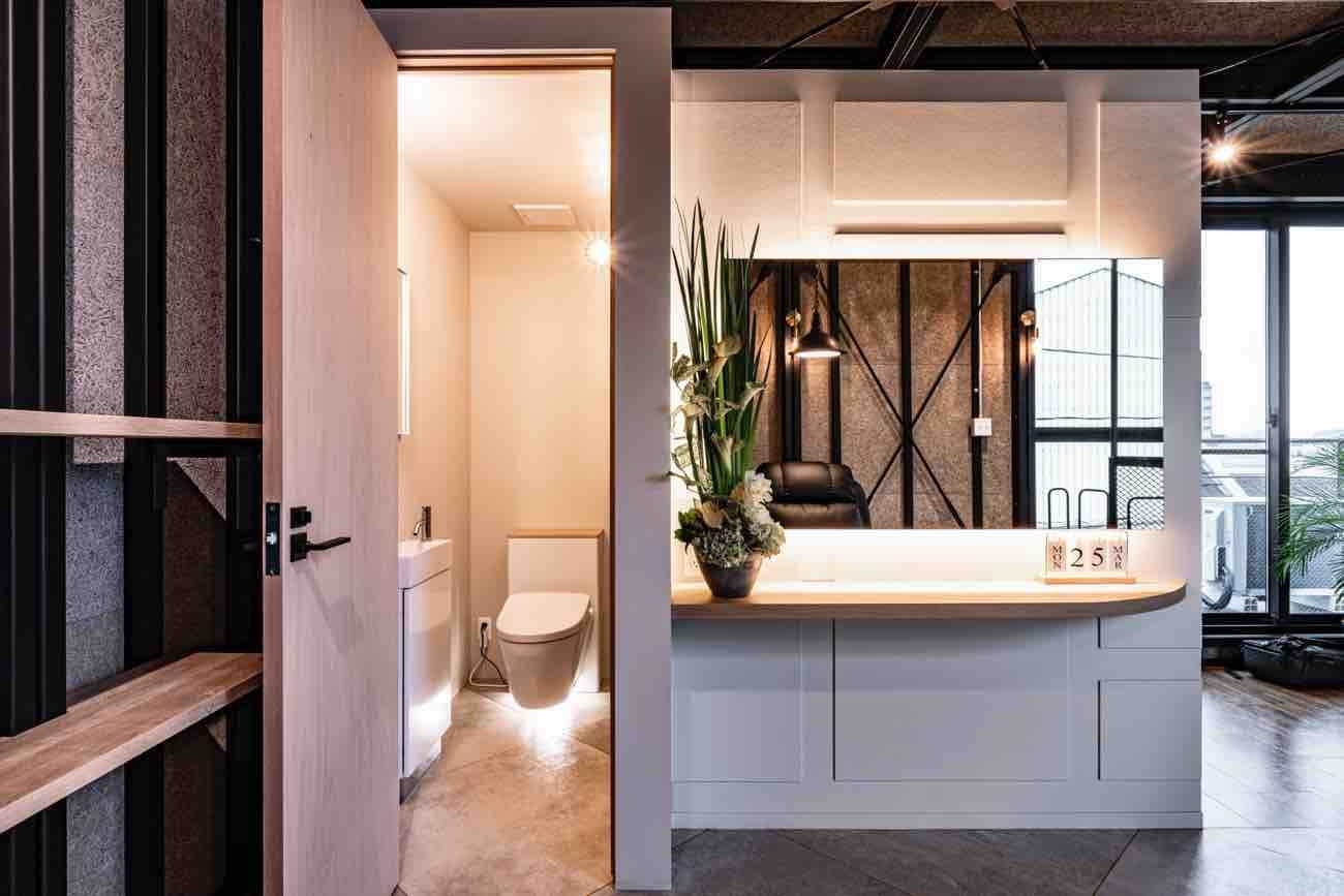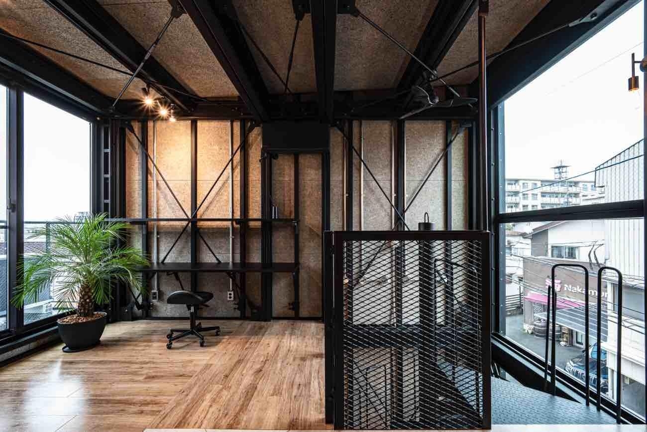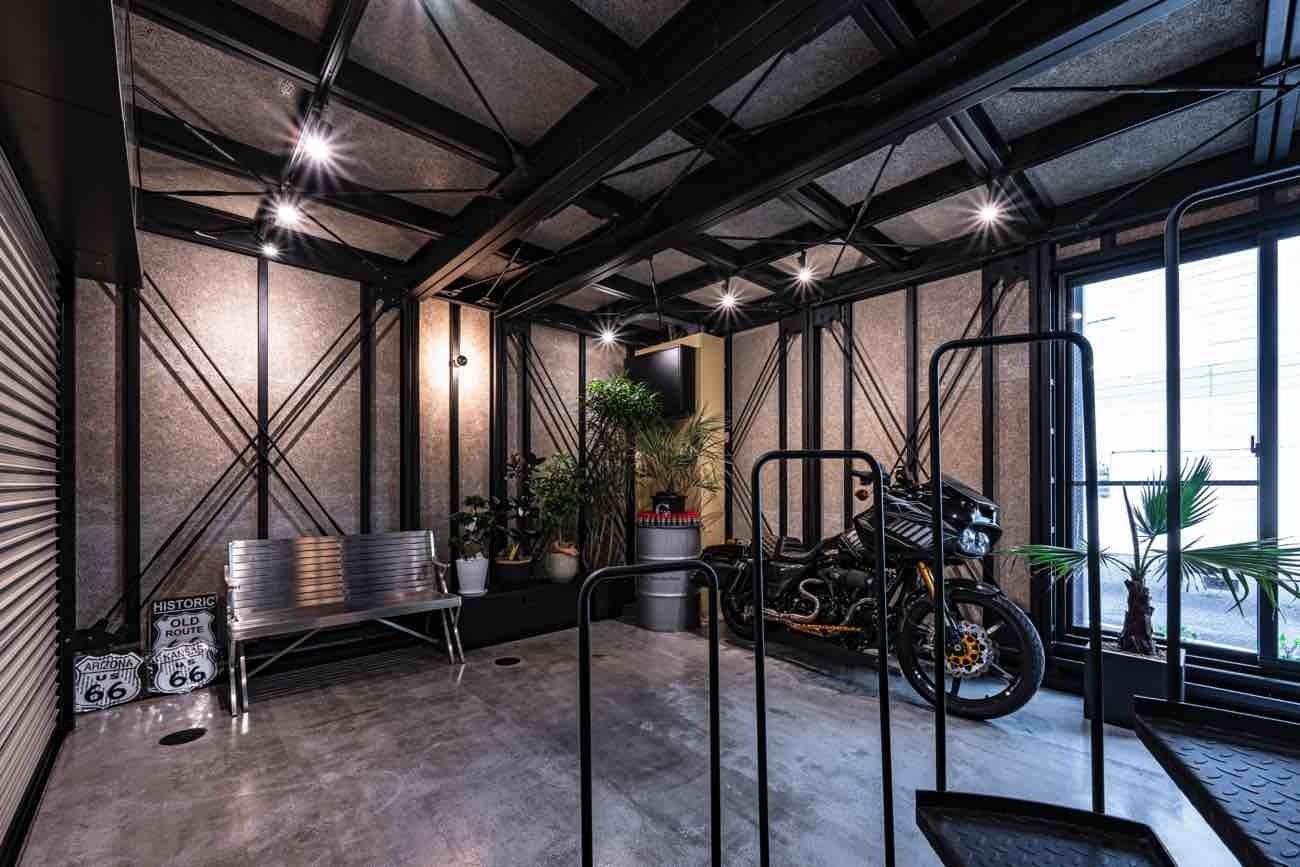 クルマ、バイク好きにはたまらないこのテイストと、それだけではなく3階には美容サロンも併設しているので、スモールビジネスやテナントへの転用イメージも可能となっています。