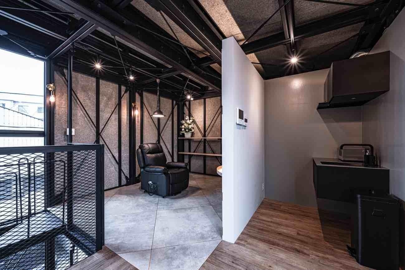 インテリアも、デイトナハウスならではの鉄骨素材を剥き出しにした“骨”の質感を楽しむガレージハウスとなっています。