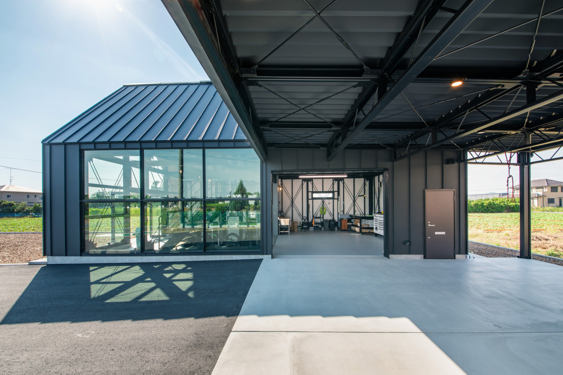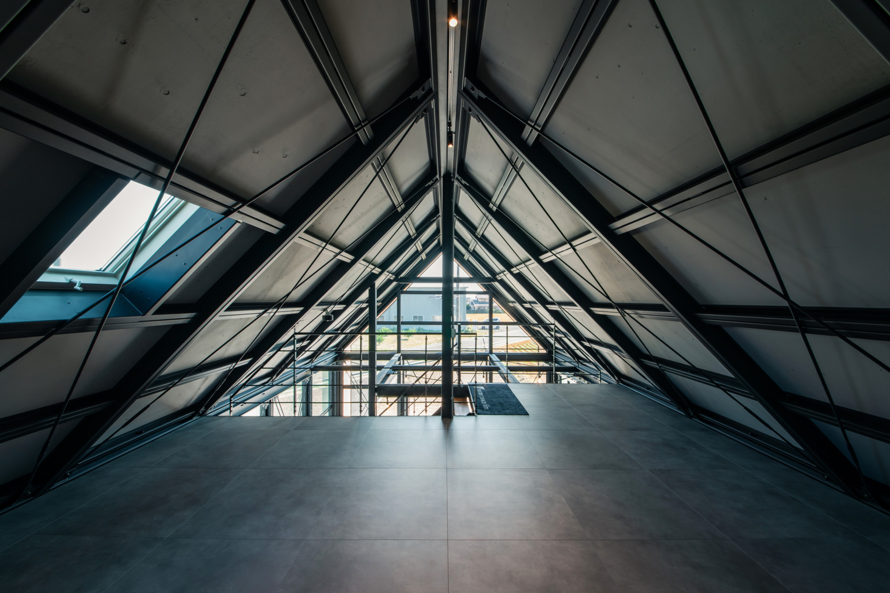 特徴的な三角屋根のオフィス兼作業場の