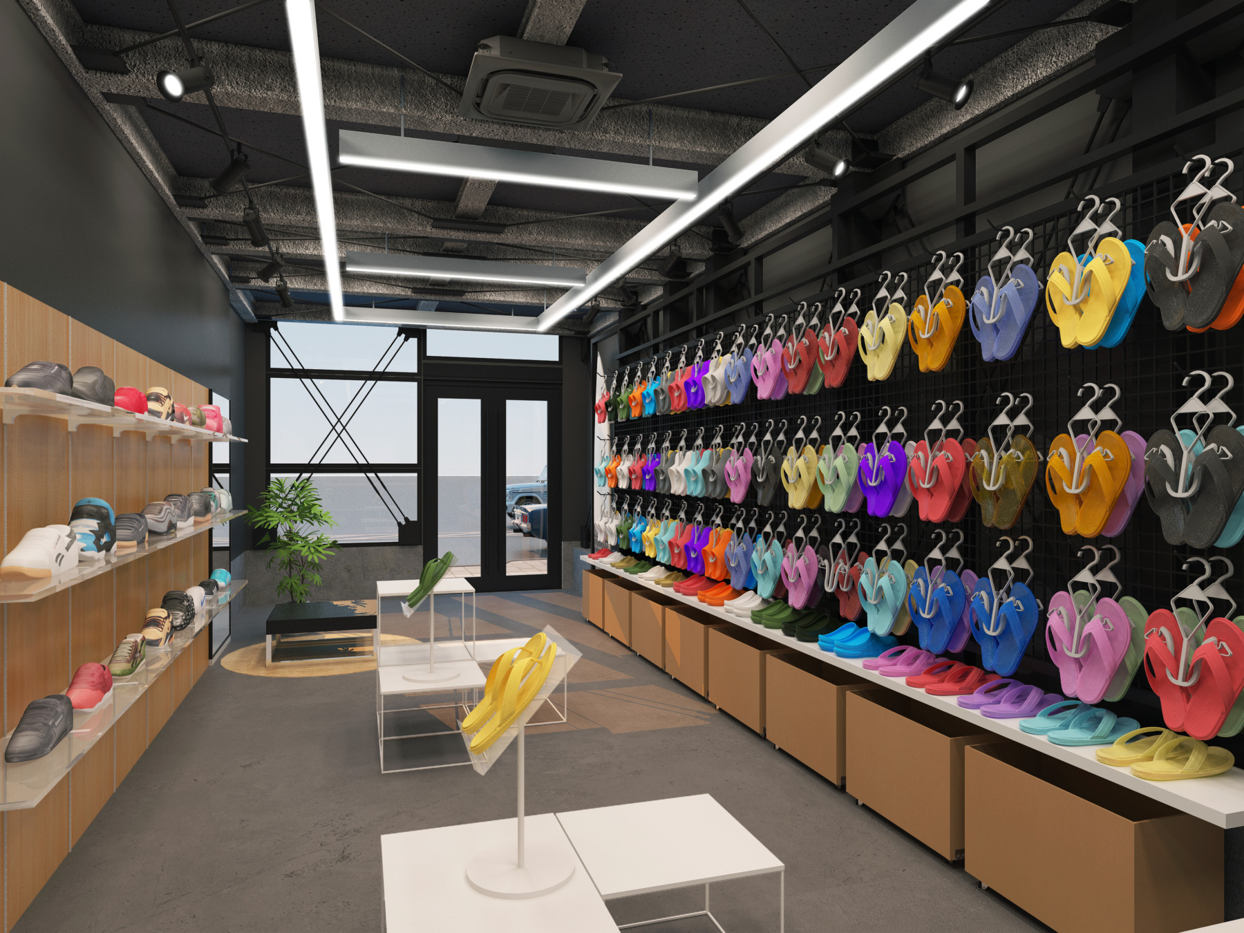 建物は、デイトナハウスを象徴するガラスウォールをファサード全面に採用した、全3階建ての洗練された建築物。グリッド構成とオールドモダンな佇まいが、訪れる人に空間のコンセプトを自然に伝え、内と外の境界をあえて曖昧にすることで、まちとの一体感を生み出しています。