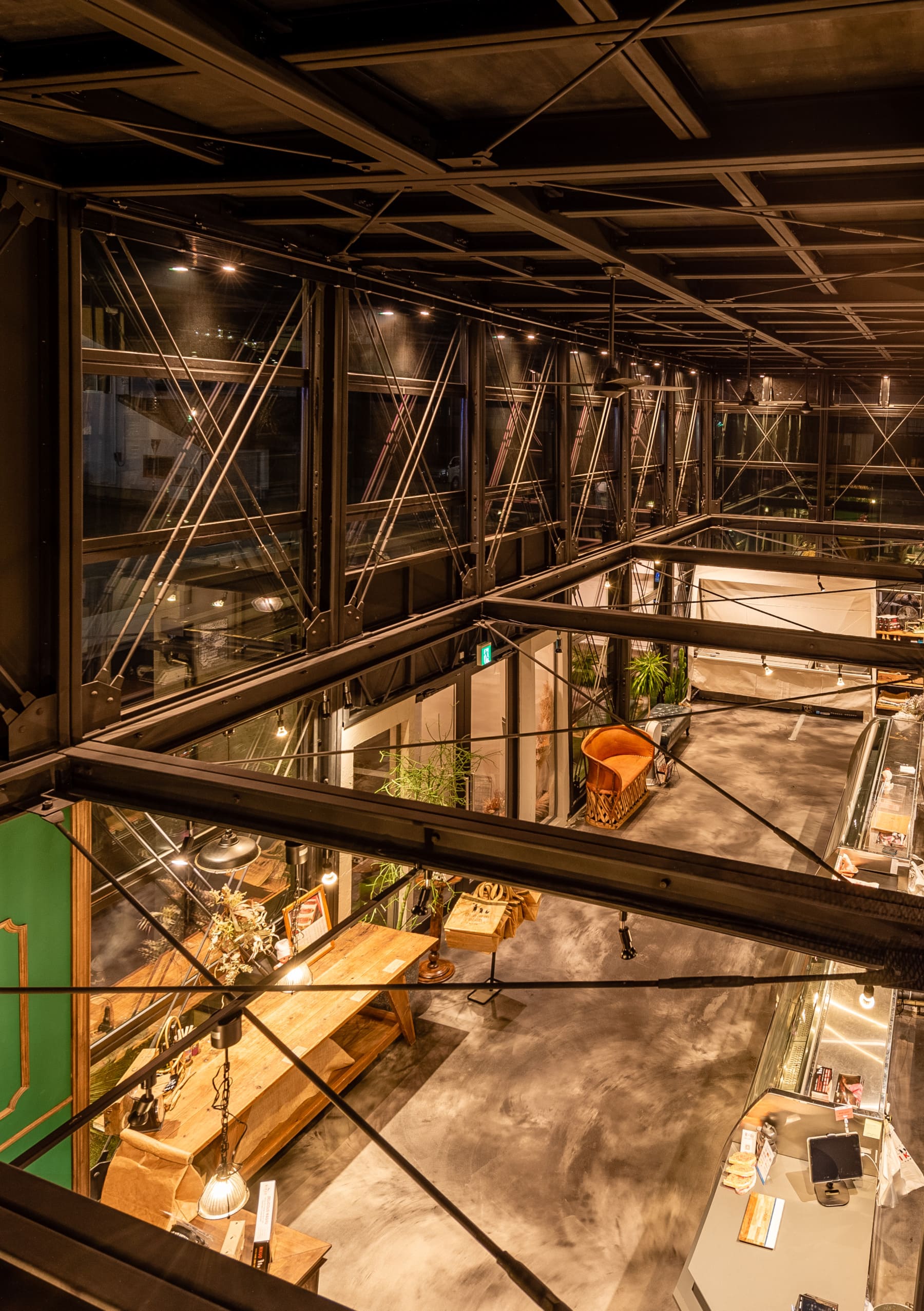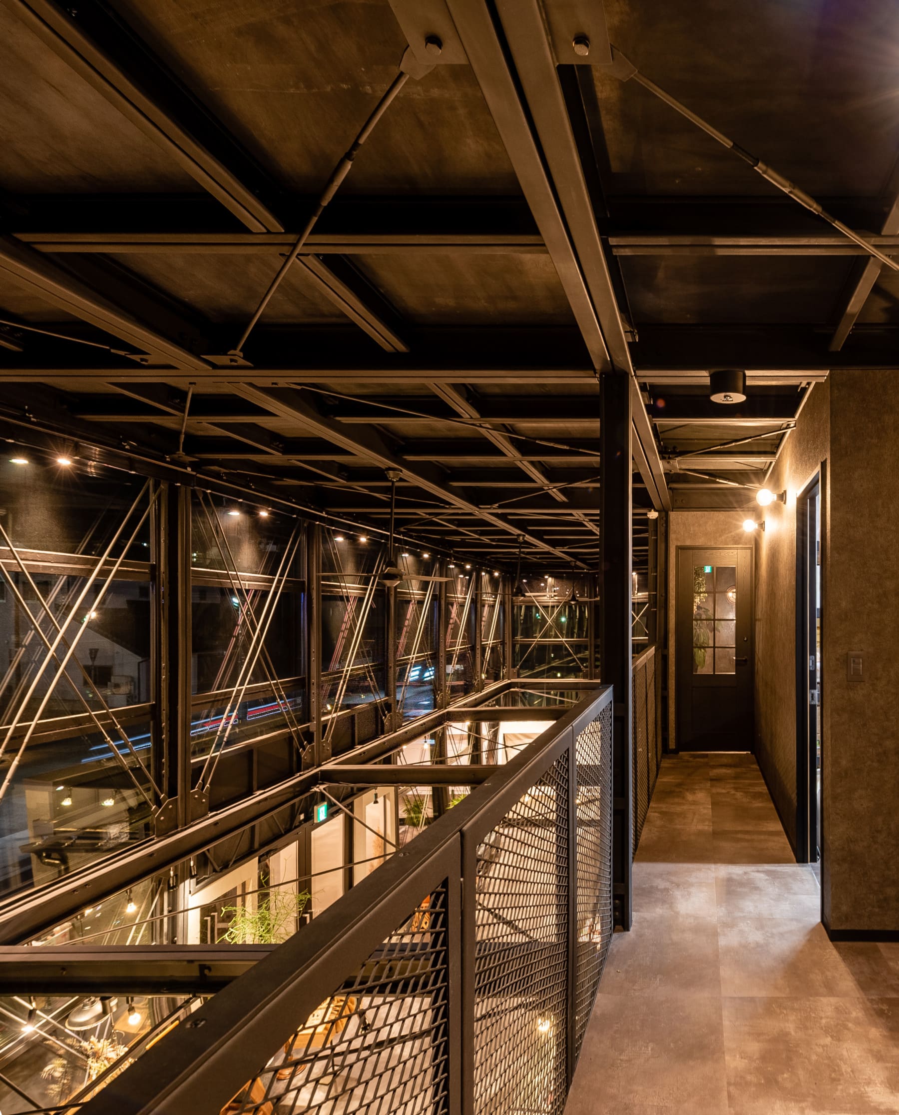 豊かな吹き抜けとファサードのガラスウォール。これらの要素が表現する空間性がデイトナハウスならではのもの。しかもその開放感がより一層、お肉への食欲を掻き立てる不思議な感覚に。NIKUOの高度な企画力に感嘆です。